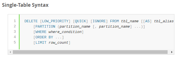 MySQL :: MySQL 8.0 Reference Manual :: 13.2.2 DELETE Statement