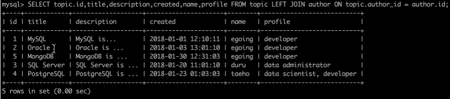 'MySQL > 생활코딩' 카테고리의 다른 글
