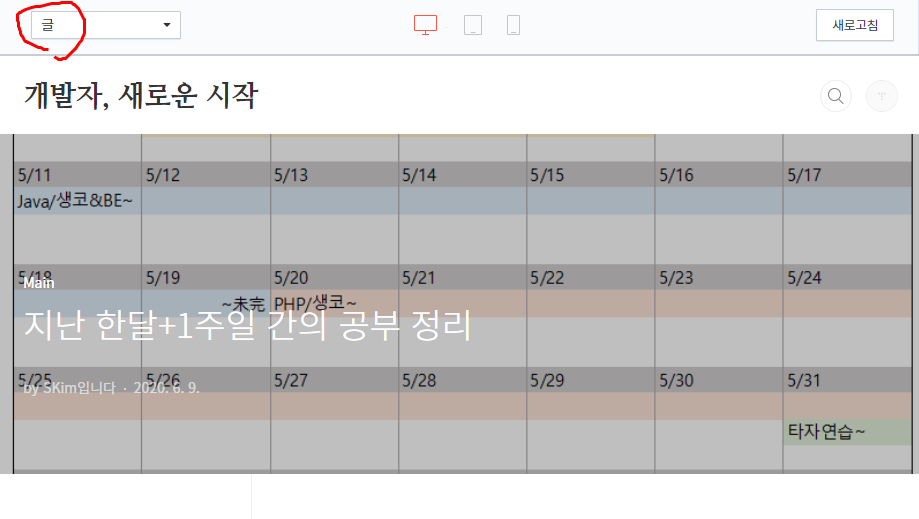 티스토리 html 편집기로 가서 '글'로 바꿨다.