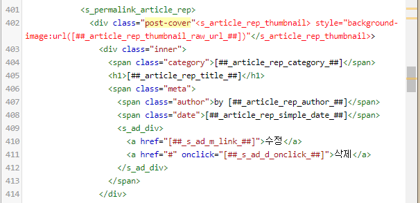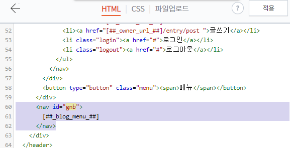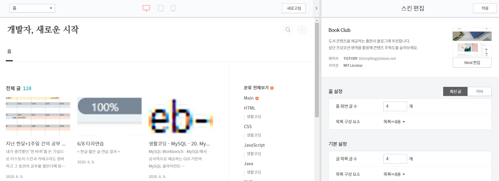 아까 작업하던 티스토리 설정의 html 편집 화면에서