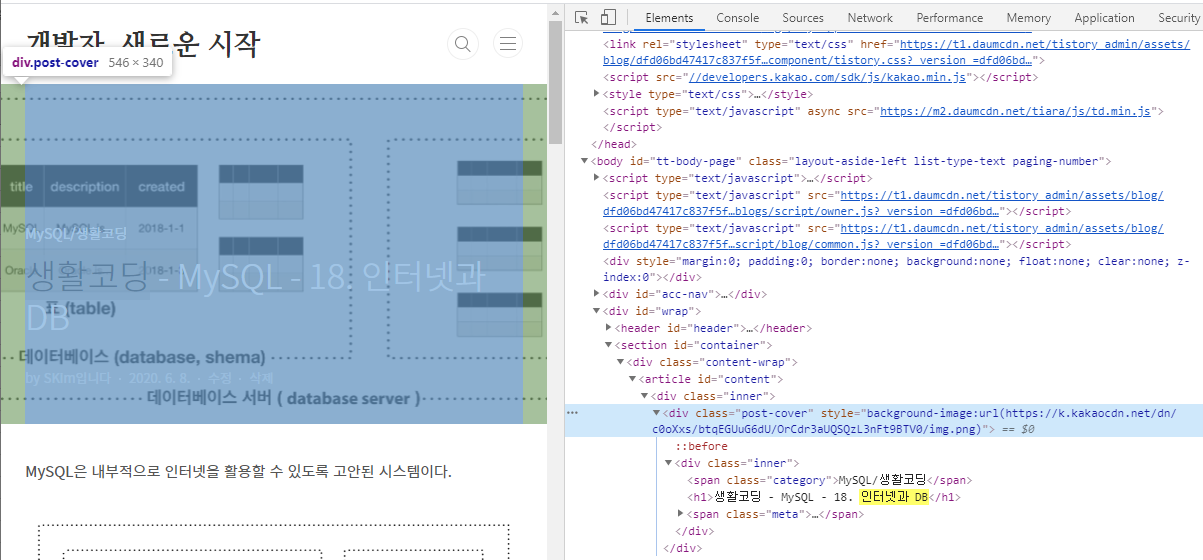 마우스 우클릭을 한 후 (크롬 기준) 검사를 누르면