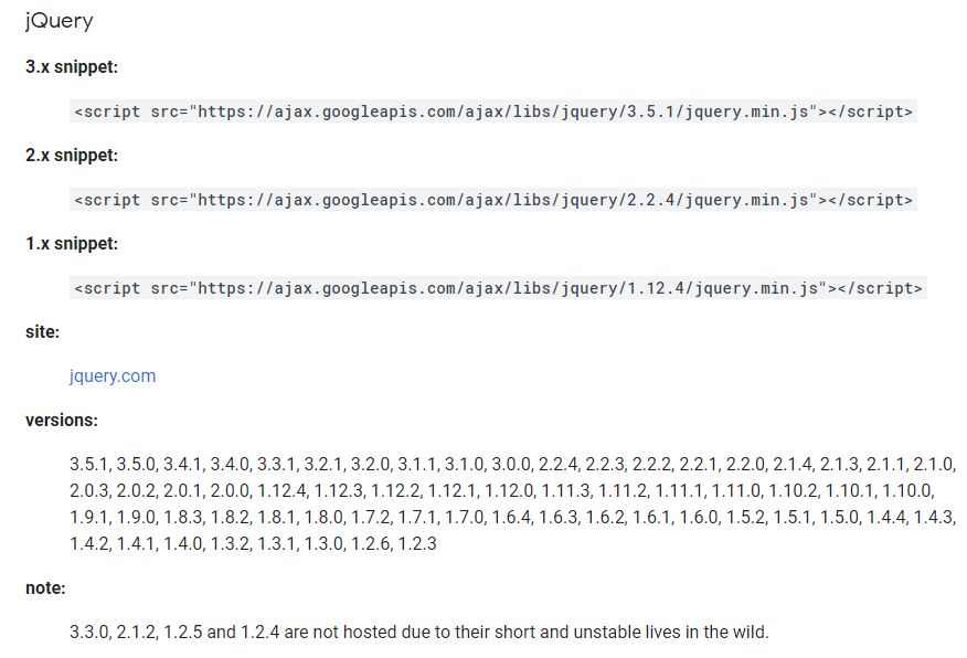 여기서 Google CDN을 눌러서 첫번째 3.x를 복사한다.