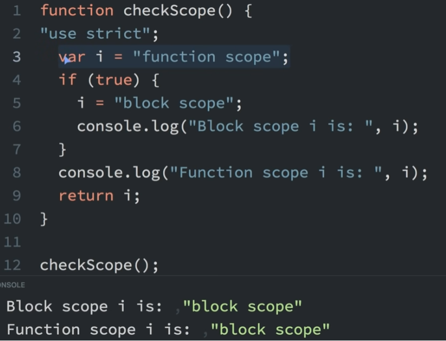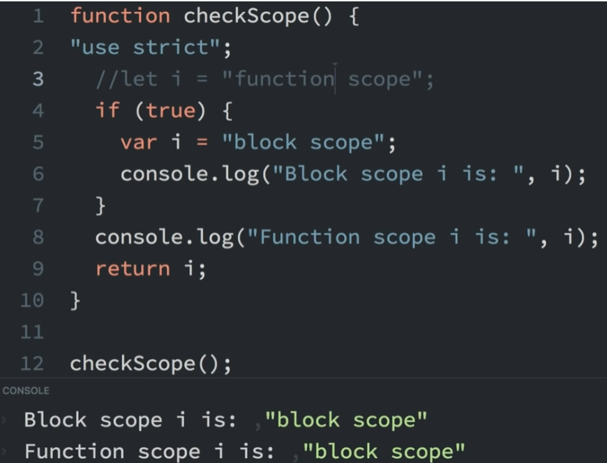 첫번째 let 선언을 주석처리하고 실행시켰을 경우,