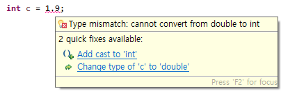 1.9(double)을 자동으로 1(int)로 컨버팅하면 0.9를 잃어버리므로