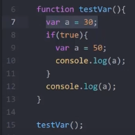 7행에서 변수 a를 global scope로 30으로 set했다.
