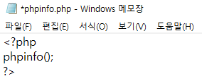새로만들기 - 텍스트 문서로 phpinfo.php 파일을 만들어보자.