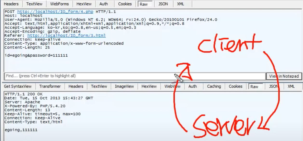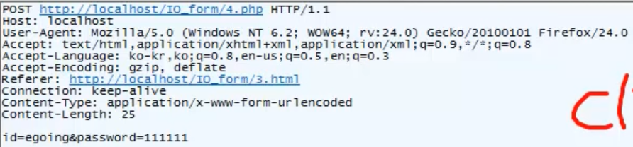 그 뒤에 name=egoing&password=111111 이라고 적혀있는 상태로