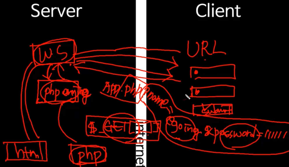 그러면 PHP는 이 코드를 해석하다가 $_GET[ ] 이라는 코드를 만나게 된다.
