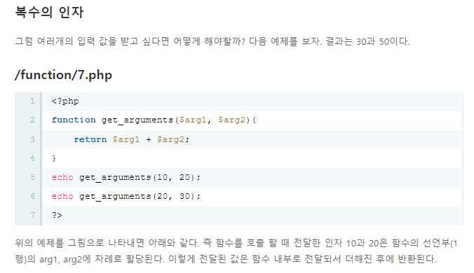 $arg1과 $arg2는 이 함수 안에서만 의미 있는 지역 변수이다. ↔ 전역 변수