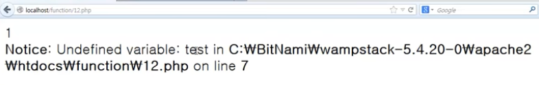 전역에도 $test가 있고 지역에도 $test가 있으면
