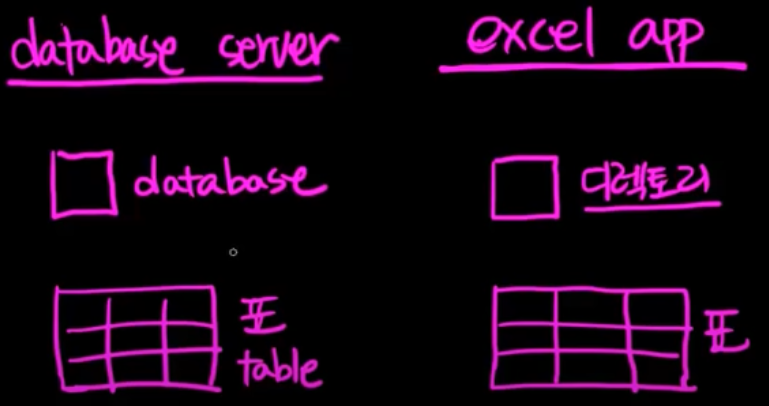 엑셀이라고 하는 앱에 해당되는 것이 DB에서는 DB 서버이다.
