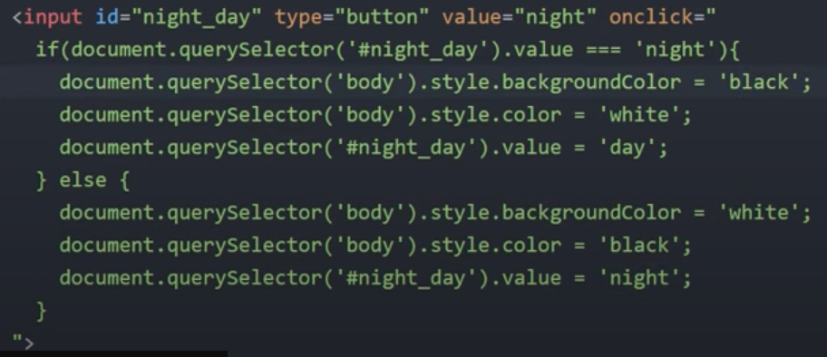 따라서 night 모드로 바꿀 때, value를 day로 바꾸도록 한다. (마지막 줄)